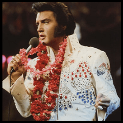 The choice was, conscious or unconscious, Elvis or more correctly, Elvis as an archetypal symbol wearing the American eagle jumpsuit, standing on the stage in Hawaii while channeling the foundation of life: love and all its entanglements.
