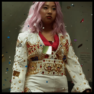 The director had to choose, how this girl Jobu is introduced. Which costume does she wear? And during this sequence of the movie, “I lost my nose and mouth,: as we say in Denmark. Jobu was wearing Elvis’s Aloha From Hawaii jumpsuit: The American eagle, the choice of the founding fathers. And just as I made fun of my father, Joby´s mother exclaims, “Why do you look so stupid?”